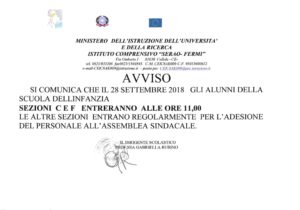 AVVISO ASSEMBLEA SINDACALE DEL 28 SETTEMBRE 2018 SCUOLA INFANZIA