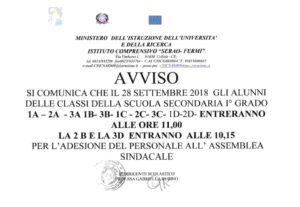 AVVISO ASSEMBLEA SINDACALE DEL 28 SETTEMBRE 2018 SCUOLA MEDIA