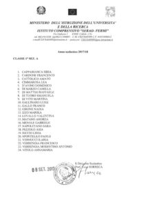 Elenco classi definitivo scuola SECONDARIA di primo grado a.s. 2017/2018
